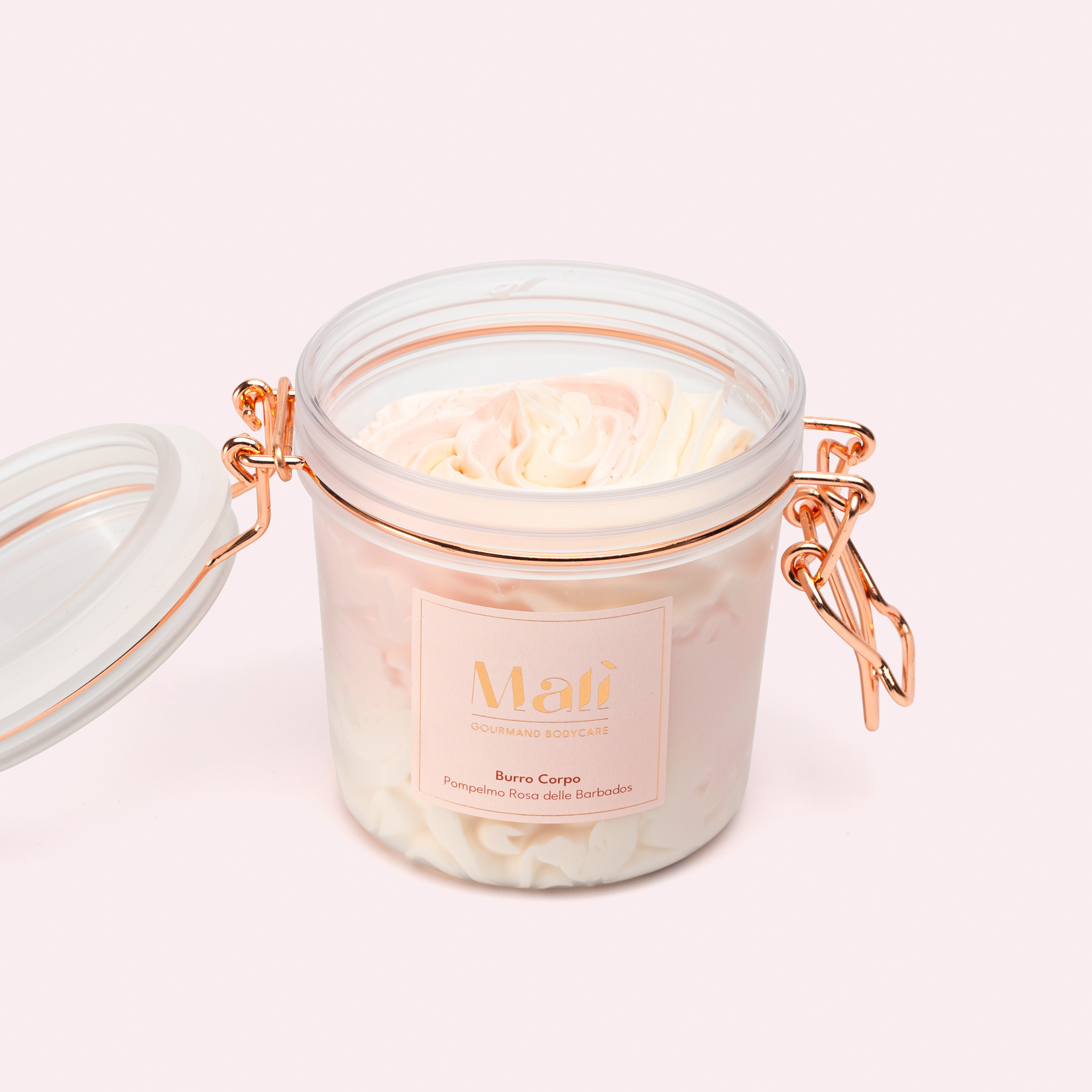 La vivacità agrumata del pompelmo rosa delle Barbados si unisce all’olio essenziale e all’olio di cocco vergine, dando vita a un burro corpo rigenerante che risveglia la pelle e i sensi.