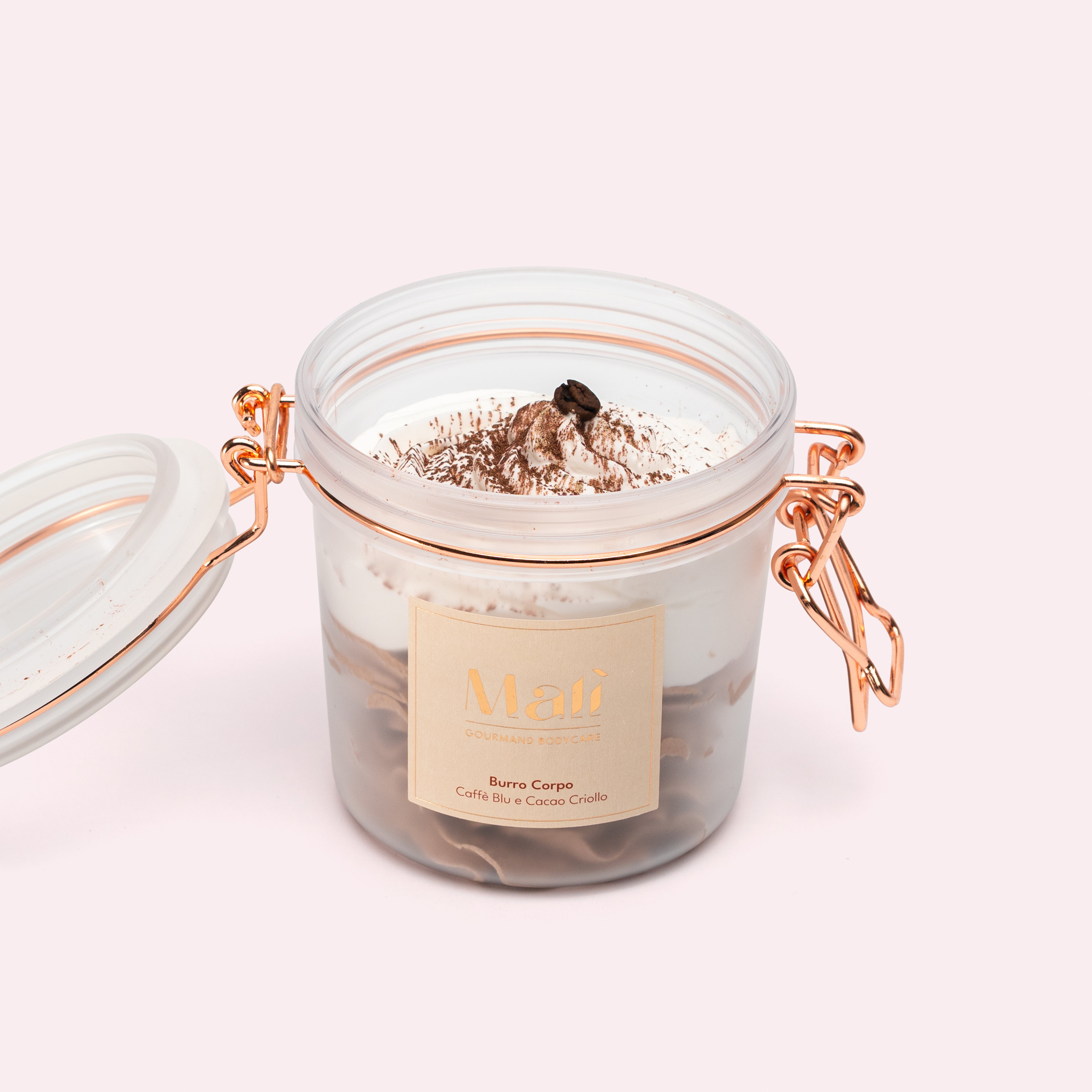 Il caffè delle Blue Mountain e il raro Cacao Criollo si fondono armoniosamente con il burro di karité estratto a freddo e l’olio di cocco vergine, dando vita a un burro montato dalla texture soffice e setosa.
